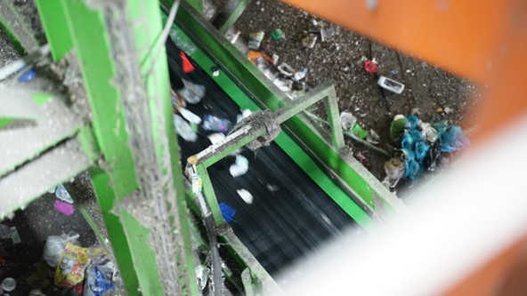 In the first sorting step, rotating drum screens separate packaging components from the main stream according to their size. At the end, all material that falls through the last three-by-three-centimeter screen openings is not sorted further and is sent for thermal recycling, i.e., incinerated. In the further sorting process, near-infrared sensors (NIR) recognize different types of plastic and fiber based packaging. Magnets and Eddy Current remove ferrous and non-ferrous metals, and so-called windsifters remove light films by suction.