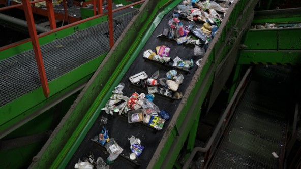 Packaging waste, which has been collected by the Dual Systems in Germany since 1993, ends up in waste sorting plants such as the one in Ochtendung near Koblenz. The waste management company Veolia sorts 90,000 tons of packaging waste every year in this highly automated sorting plant. Packaging that citizens dispose of in yellow bags and bins is separated into a total of 13 different material streams, including main streams of polypropylene (PP) polyethylene (PE) and polyethylenterephthalat (PET) in the form of film and rigid packaging, as well as metals, and paper.