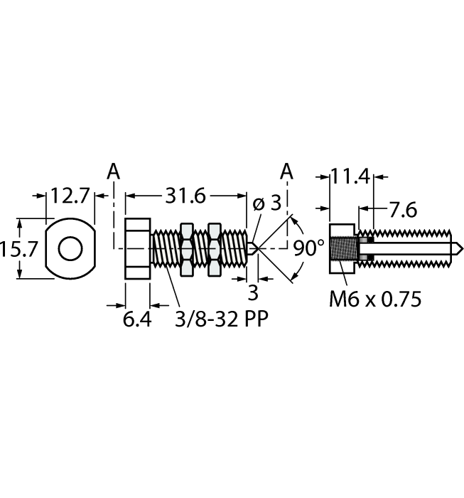 - Housing made of polypropylene with 3/8-32 male thread