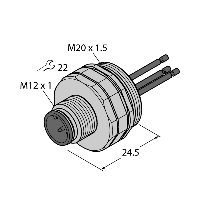 • M12 × 1 male receptacle