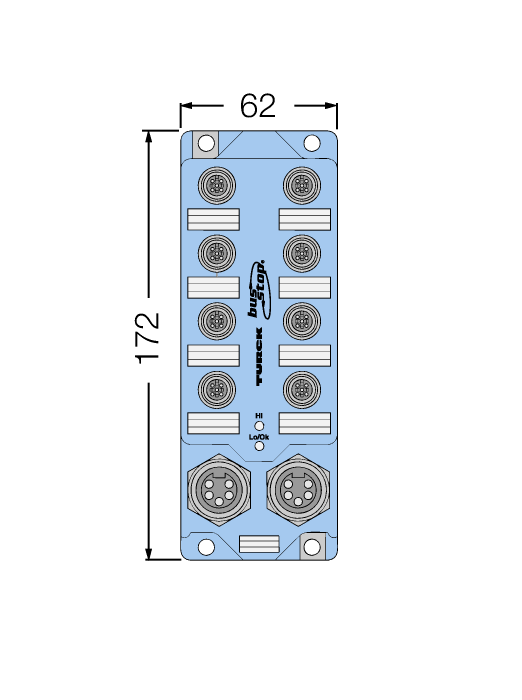 Order number: 6602068- Junction box for wall mounting with stainless steel M12 receptacle connections