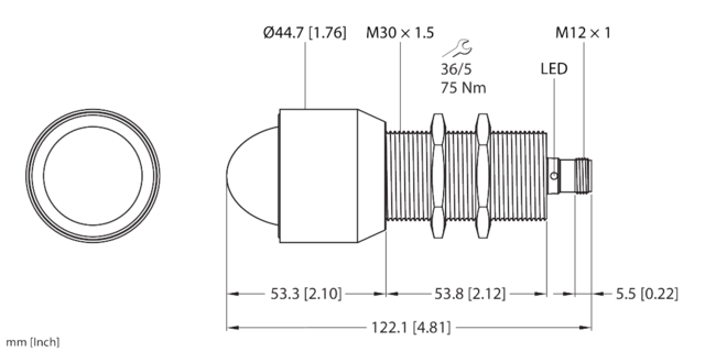 - M30 cylindrical design, stainless steel