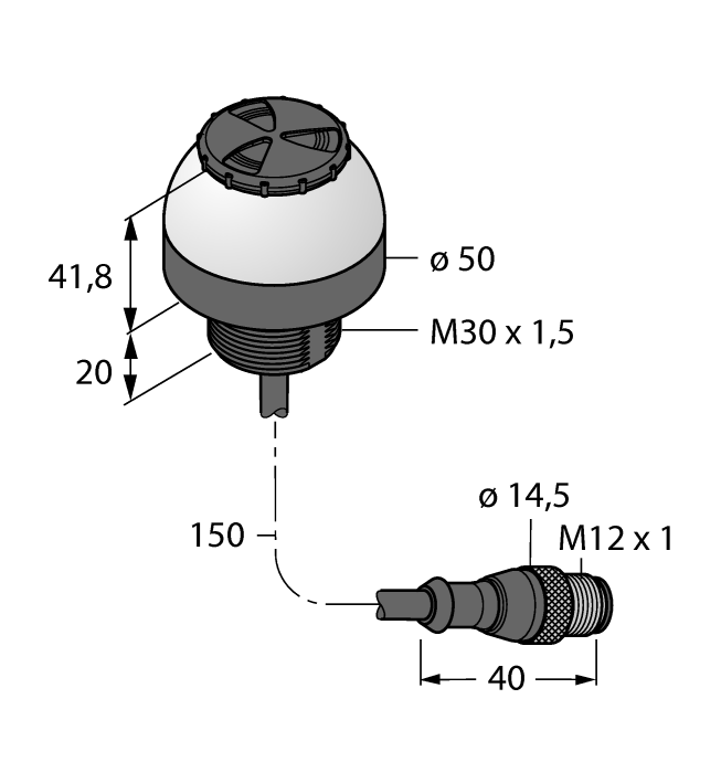 | Electrical connection | Cable with connector, M12 × 1 |