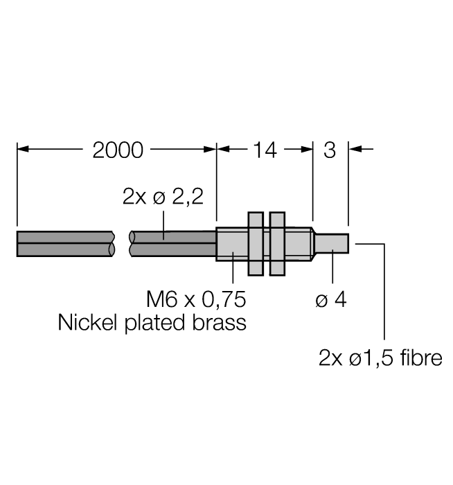 - Optical fiber, core diameter 1.5 mm