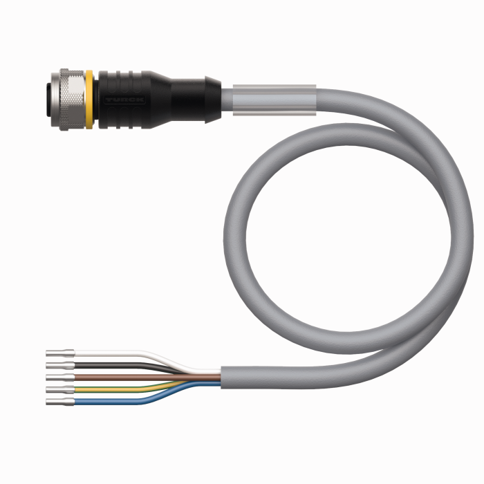 Power supply cable, 7/8” connector, straight, 4-pin to 7/8” female connector, straight, 4-pin, cable length: 2 m, jacket material: PVC, yellow; other cable lengths and qualities available, see www.turck.com |