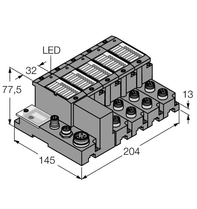 Order number: 7030613- Connection of up to 8 read/write heads via BL ident M12 extension cables
