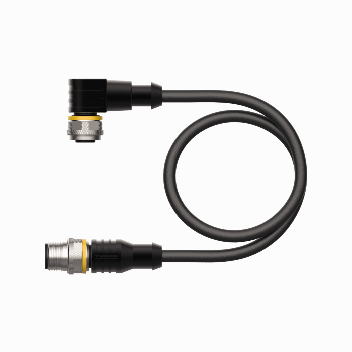 - M12 female connector, angled, A-coded